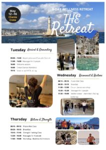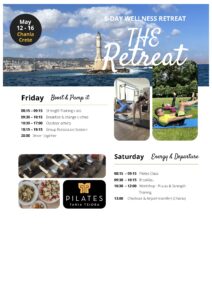The retreat in Crete offers a complete experience that renews both body and mind through Pilates, self-care, and nourishing nutrition. These days are all about you: a precious pause to reconnect with yourself, restore your energy, and rediscover a sense of wholeness often lost in everyday life. It’s not just about exercise – it’s an opportunity to nurture yourself on every level, through movement, wholesome meals, outdoor activities and moments of deep relaxation, while drawing inspiration for meaningful evolution in your life. During the 5 days in Chania, every practice is thoughtfully designed to awaken strength, vitality, and clarity. From Pilates sessions to nutrition workshops and the joy of Cretan traditions, each experience supports your personal evolution. You will feel inspired, with fresh energy and perspective to carry into your everyday life. We will also explore some significant exercises of functional strengthening training